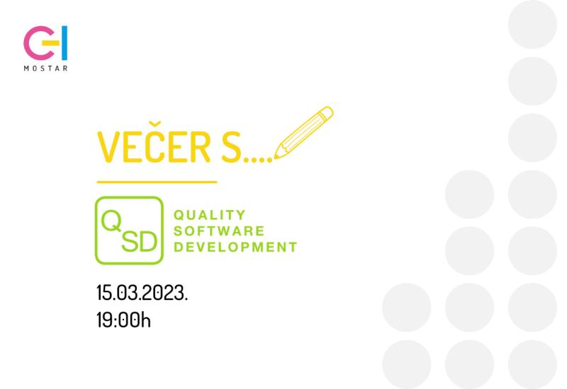 Nastavljajući dobru praksu, ovaj put će Code Hub Mostar biti domaćin poduzeća QSD iz Mostara koje se već dugi niz godina bavi dizajnom i razvojem aplikacija. Njihove vrijednosti naglašavaju kvalitetu iznad svega, dostupnost i spremnost na brze reakcije na potrebe klijenata te profesionalizam. U Code Hub stižu s ciljem razgovora upravo o vrijednostima i kulturi poduzeća, ali će fokus staviti i na mogućnost zapošljavanja i selekcijski proces te dva programa prakse. Dotaknut će se i postignuća poduzeća, ali će potaknuti i razgovor sa sudionicima o tehnologijama koje koriste. O svemu ovome će pričati Alžan Soldić, CEO, Marin Hrkać, COO i HR manager, Dražena Bošković, project manager, te Igor Marić, Android developer.