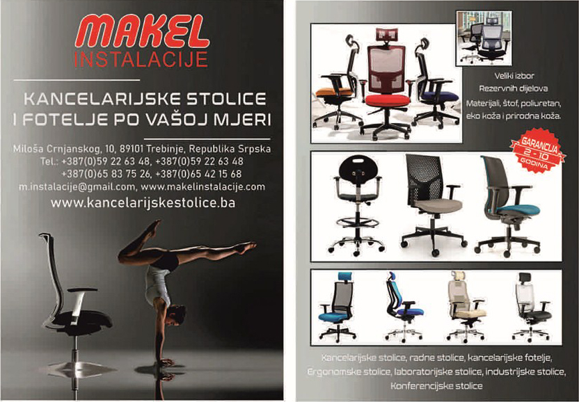 Kancelarijski i radni stolovi, konferencijske sale, ormari po mjeri. Veliki izbor radnih stolica i fotelja. Izrada po želji i zahtijevima kupaca.